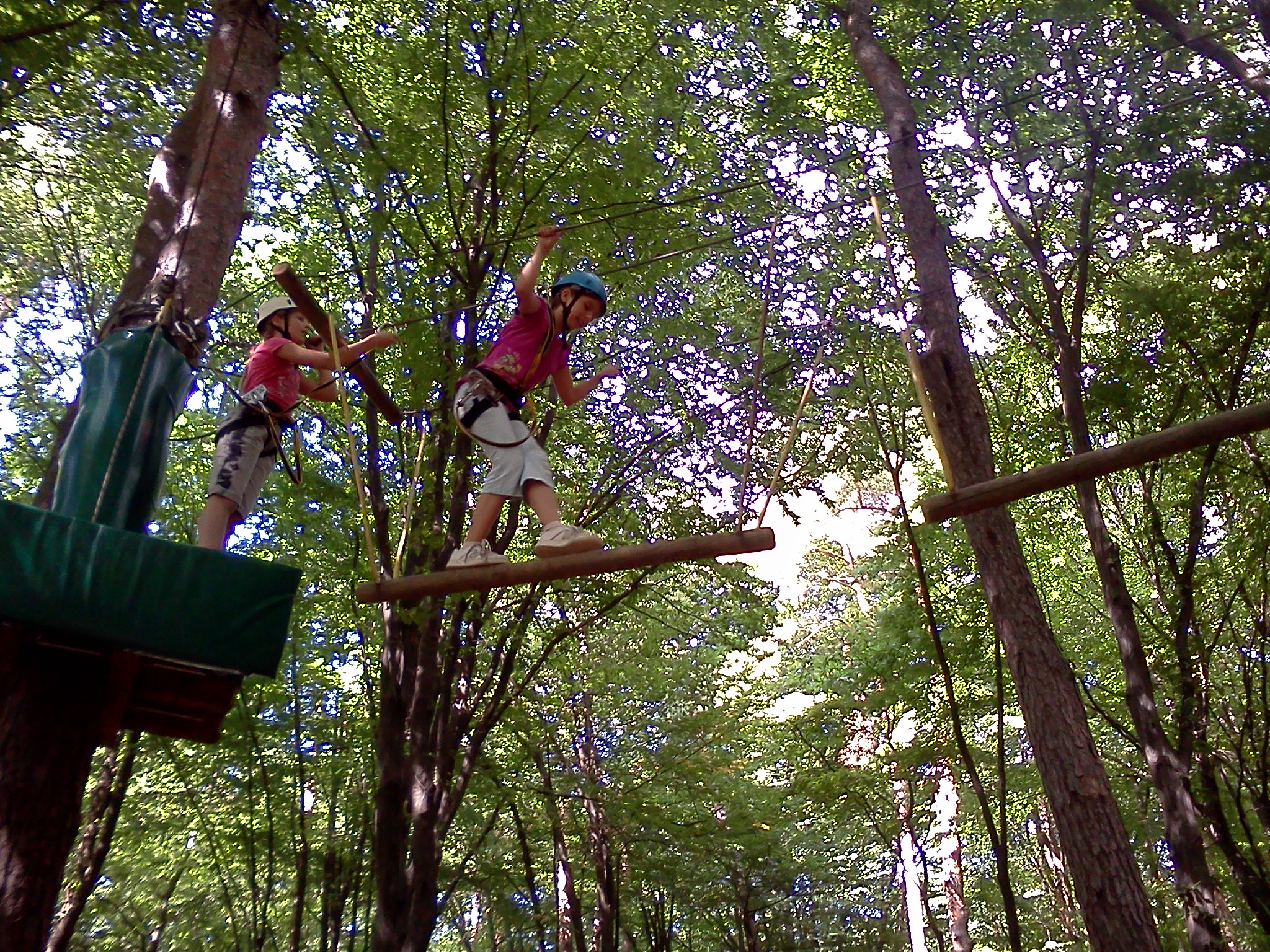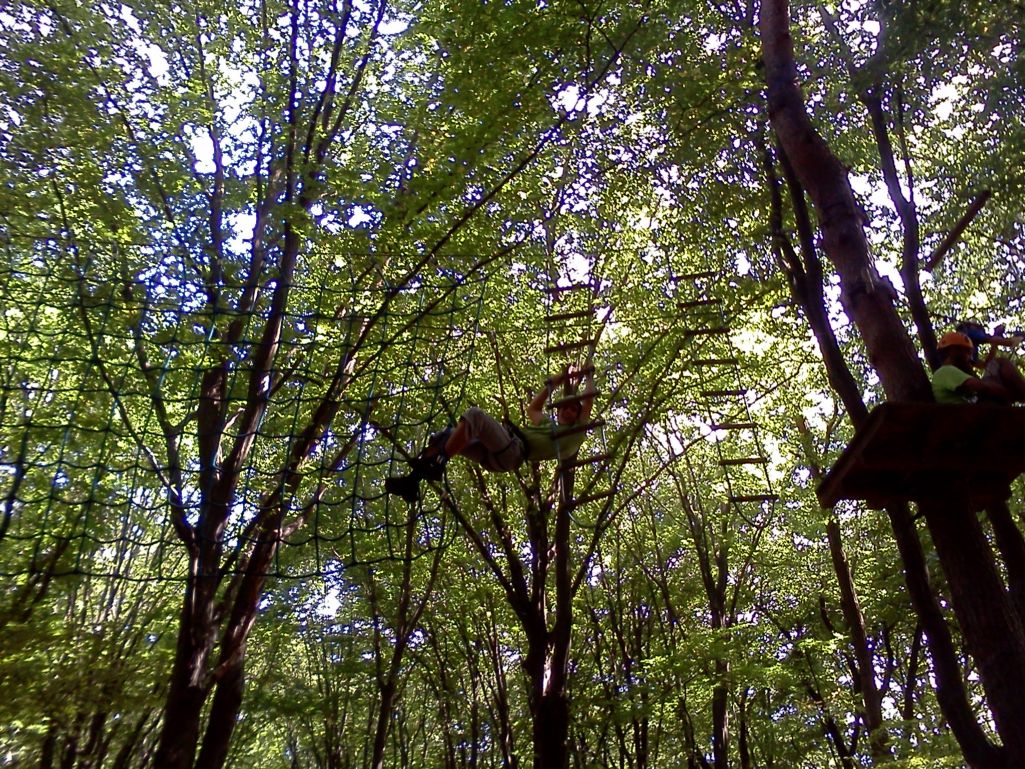 7 prog je na razpolago v Betnavi. Najmanjšo, za predšolske otroke in najvišjo, za katero je omejitev starost 16 let in 160 cm, smo spustili. Vse ostale pa so preplezali. Mami pa je tokrat na varnih tleh opazovala opice na drevesih :).